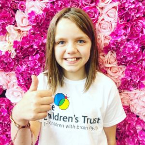Issy who received intensive rehabilitation at The Children's Trust after a stroke will be raising money for the charity by taking part in Step Forward, a virtual step challenge.